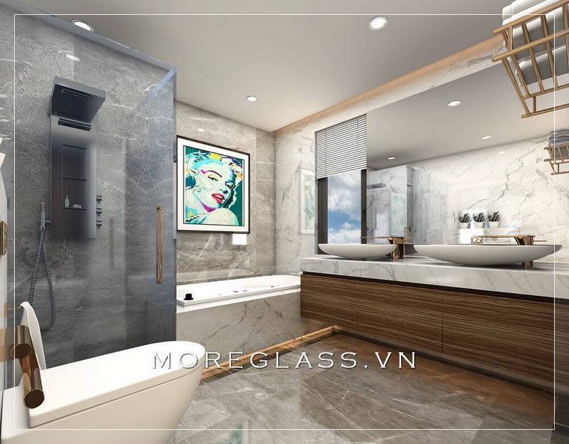 Mẫu thiết kế phòng tắm đẹp sử dụng vách tắm