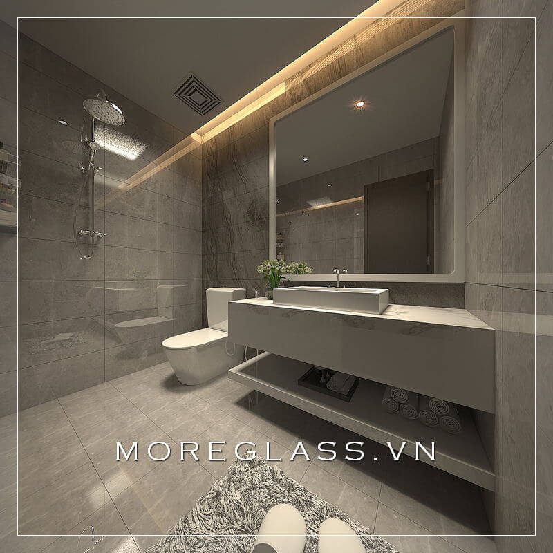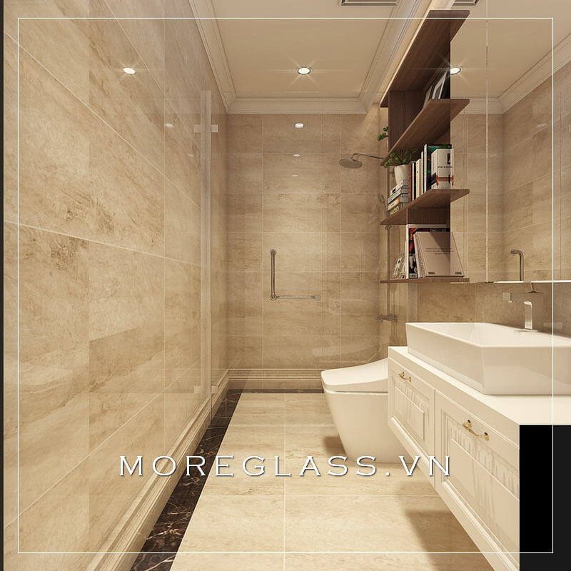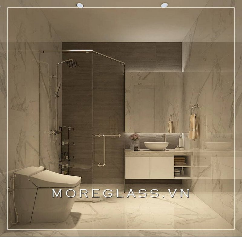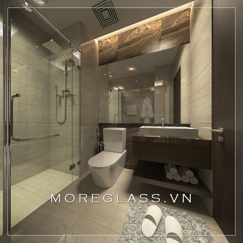 Mẫu phòng tắm kính cường lực cao cấp với kiểu dáng đơn giản nhưng tinh tế cho căn hộ chung cư, nhà phố cao cấp