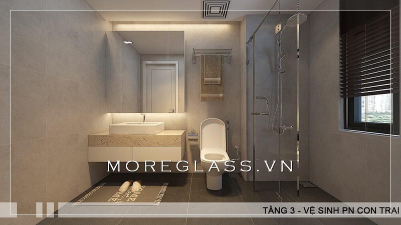 kính cường lực ngăn cách hai khu vệ sinh và tắm nhẹ nhàng mà tinh tế