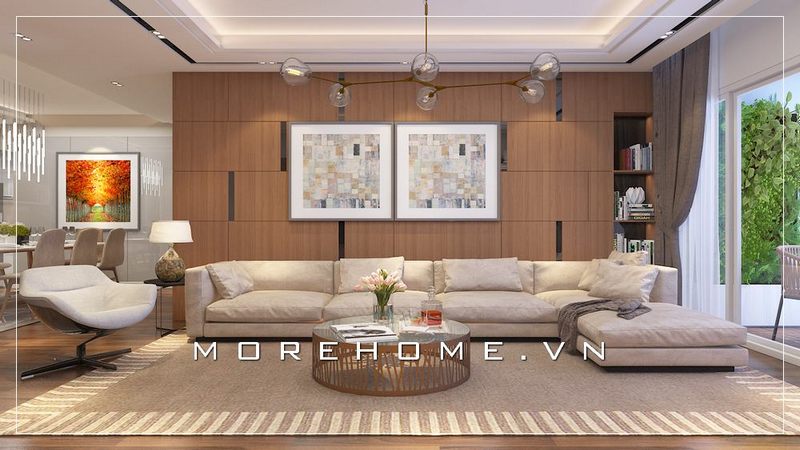 Bộ sofa góc vừa khít không gian, gợi mở một không gian thiết kế nội thất phòng khách biệt thự gọn gàng, ngăn nắp
