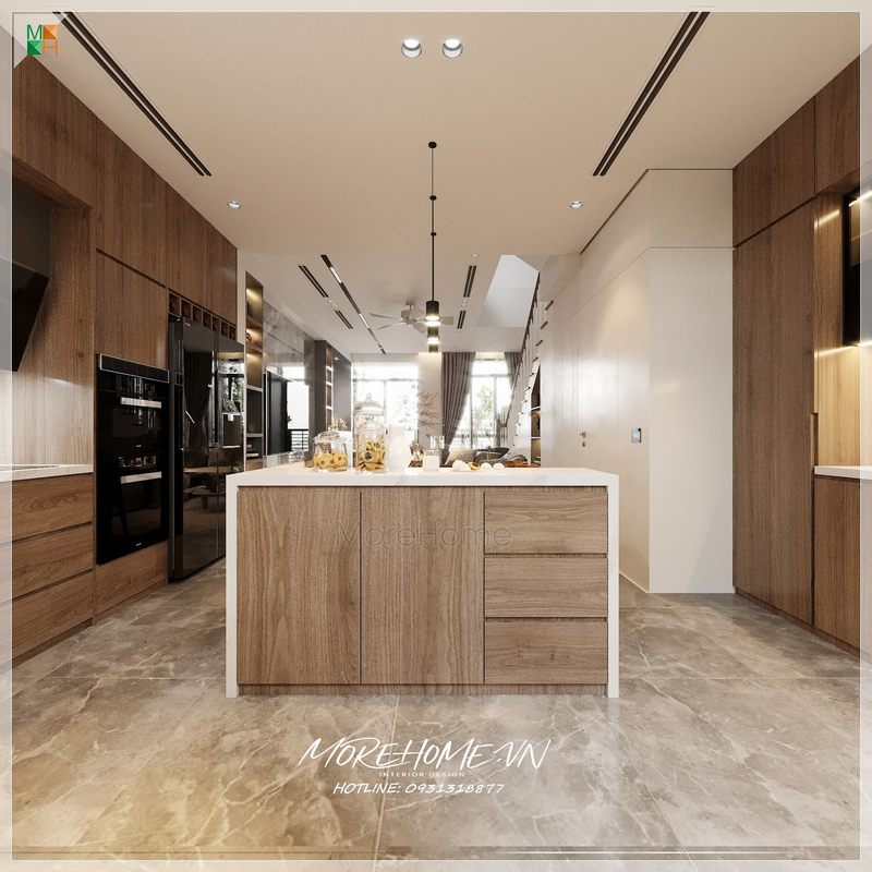 Sự góp mặt của bàn đảo bếp mang đến sự tiện nghi và hoàn mỹ cho không gian căn phòng.