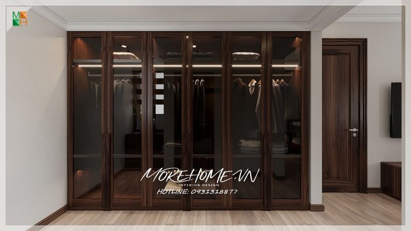 Mẫu tủ quần áo âm tường phong cách tân cổ điển được gia chủ lựa chọn giúp cho không gian thêm phần thoáng rộng hơn cả