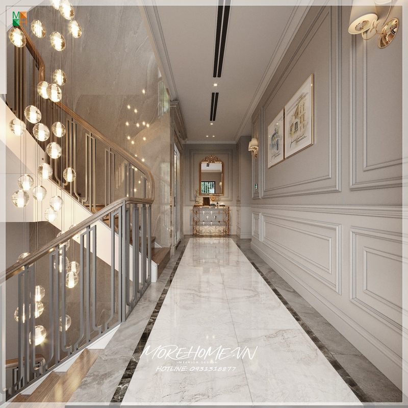 Thiết kế phòng bếp liền phòng ăn theo phong cách tân cổ điển đầy nghệ thuật nhưng được tối giản nhiều chi tiết nên vẫn thoáng đãng và gần gũi